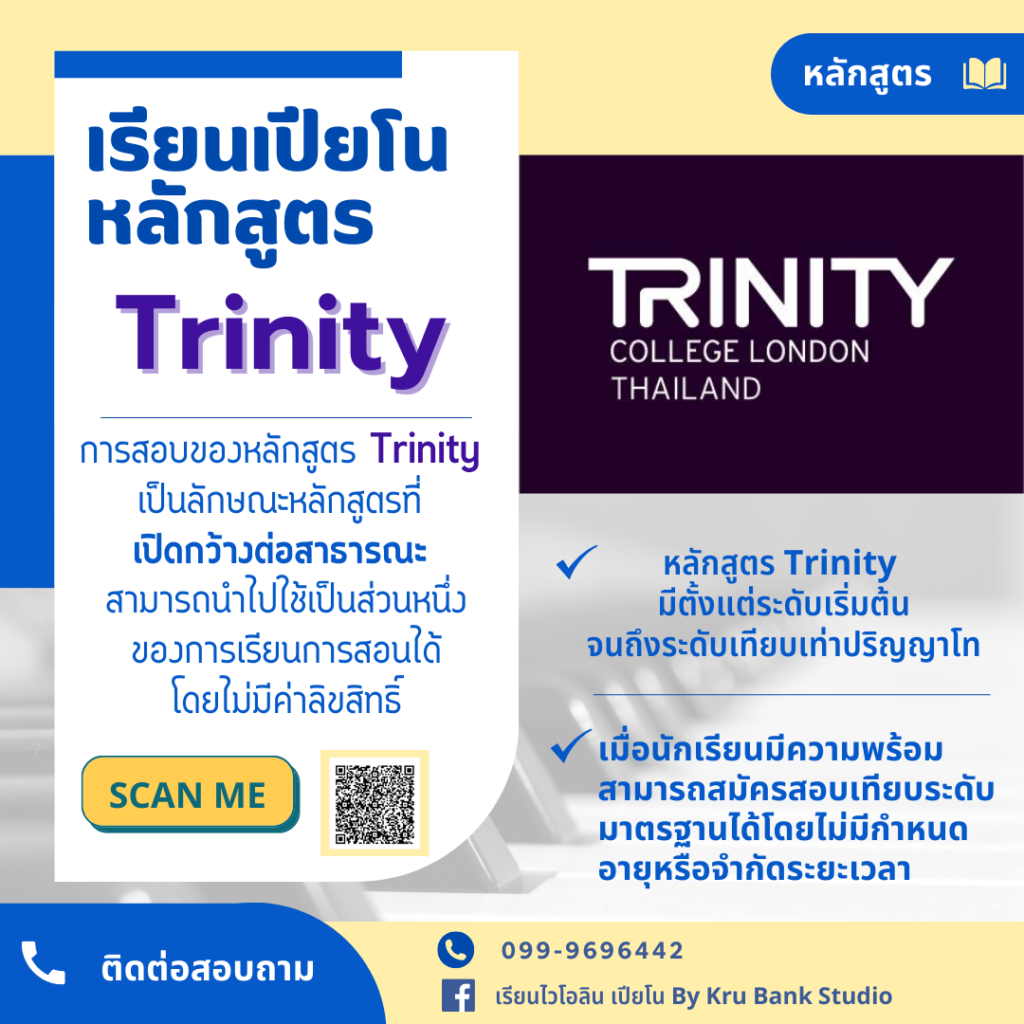 โดยคอร์สเรียนไวโอลินสำหรับสอบเทียบเกรด ครูแบงค์มีหลักสูตรให้เลือกทั้งของสถาบัน Trinity College London หรือ ABRSM ซึ่งทั้ง 2 เป็นสถาบันดนตรีชั้นนำของโลก ที่เป็นมาตรฐานระดับสากล