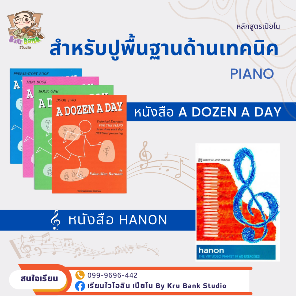 ครูแบงค์เลือกใช้หนังสือ A dozen a day และหนังสือ Hanon เป็นหนังสือที่ฝึกเทคนิคใช้มือทั้งสองข้างในการเล่นเปียโน เพื่อจะทำให้กล้ามมือเกิดความแข็งแรง