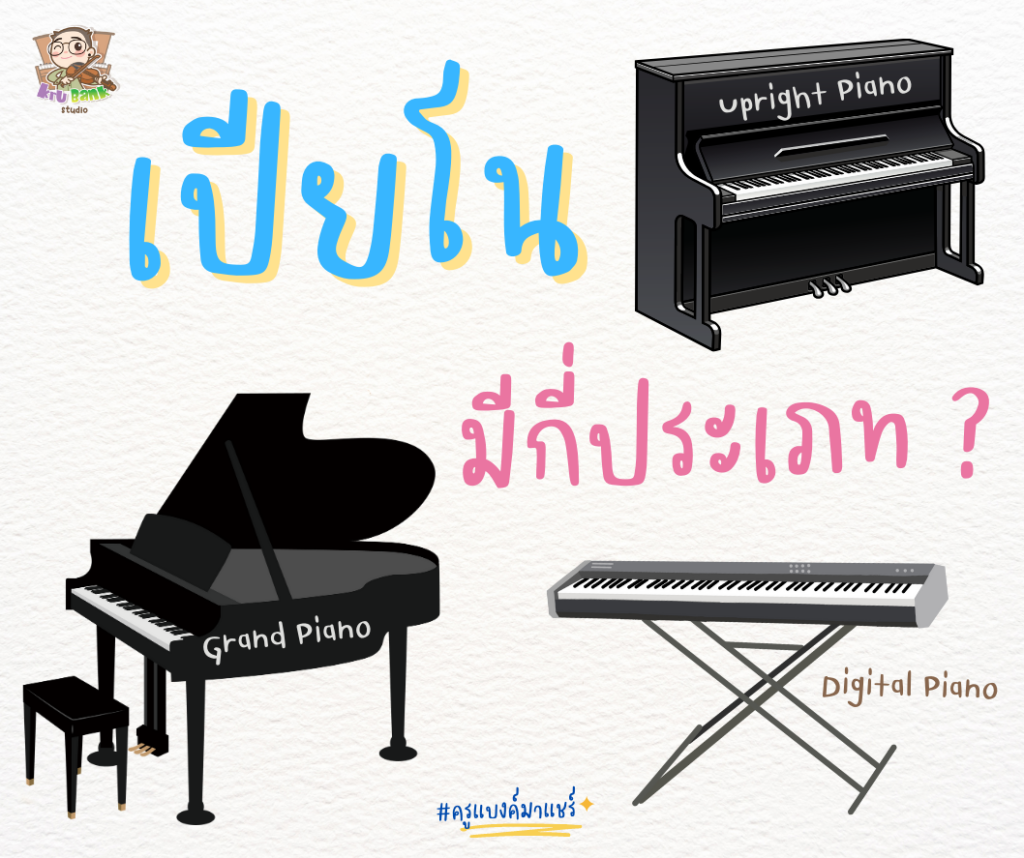 🎶เปียโนมี 3 ประเภท ได้แก่ แกรนด์เปียโน อัพไรท์เปียโนและเปียโนไฟฟ้า แกรนด์เปียโนและเปียโนอัพไรท์เป็นเครื่องดนตรีที่ไม่ต้องใช้ไฟฟ้า ส่วนเปียโนไฟฟ้านั้นต้องเสียบปลั๊กถึงจะเล่นได้ รายละเอียดของเปียโนทั้ง 3 ประเภทมีดังนี้